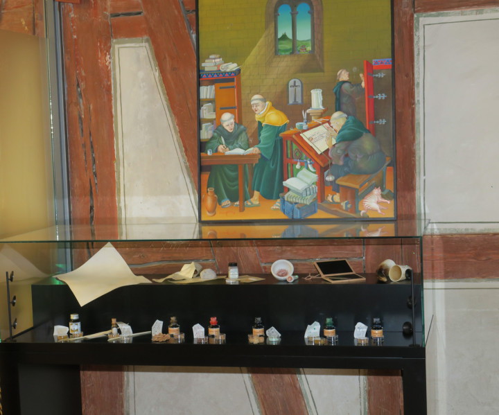 Die neue Präsentation mit einem Bild von Hans Kloss, das einen Schreibermönch bei der Arbeit zeigt.